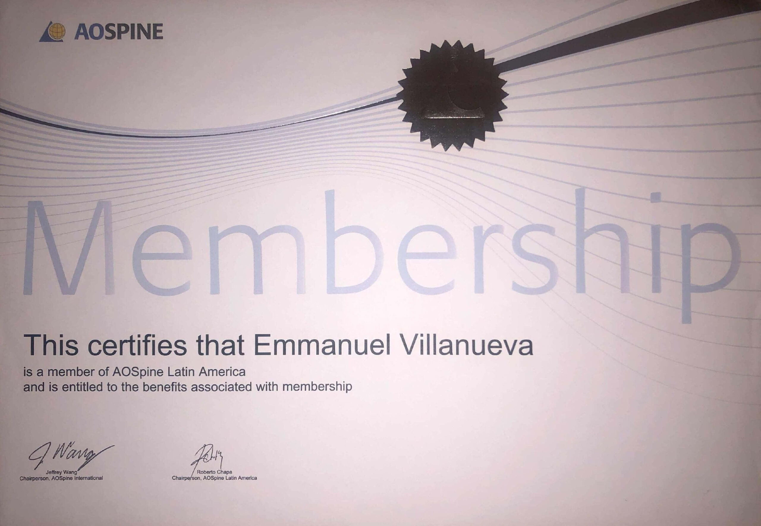 Como especialista distinguido en cirugía de columna y ortopedia, el Dr. Villanueva posee certificaciones del Consejo Mexicano de Ortopedia y Traumatología y de CONACEM. Su reconocimiento internacional viene avalado por AOSPINE y su pasión por compartir conocimiento se refleja en su rol como profesor titular en cursos de adiestramiento en cirugía de columna.
